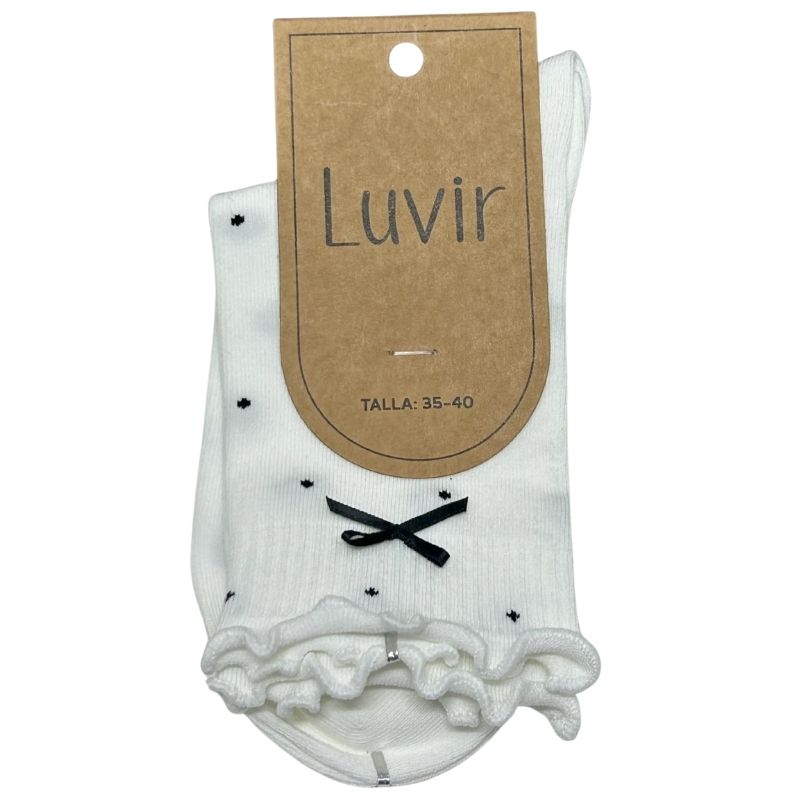 Calcetin algodon blanco con puntos y lazo LV01BL