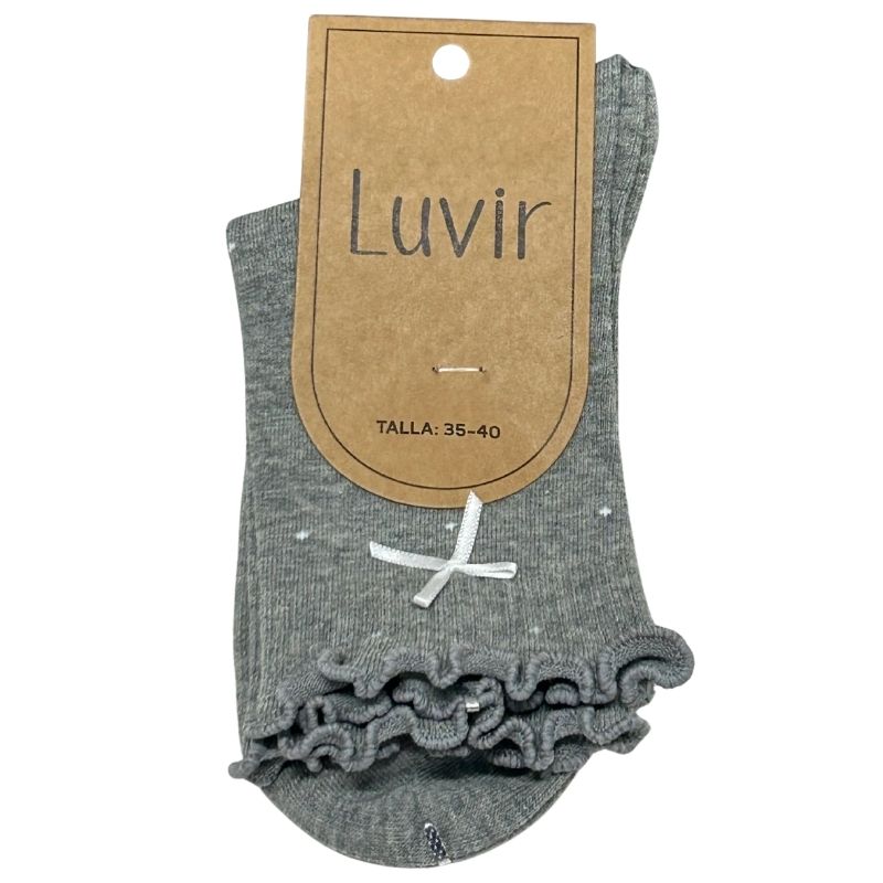 Calcetin algodon gris puntos con lazo LV01GL