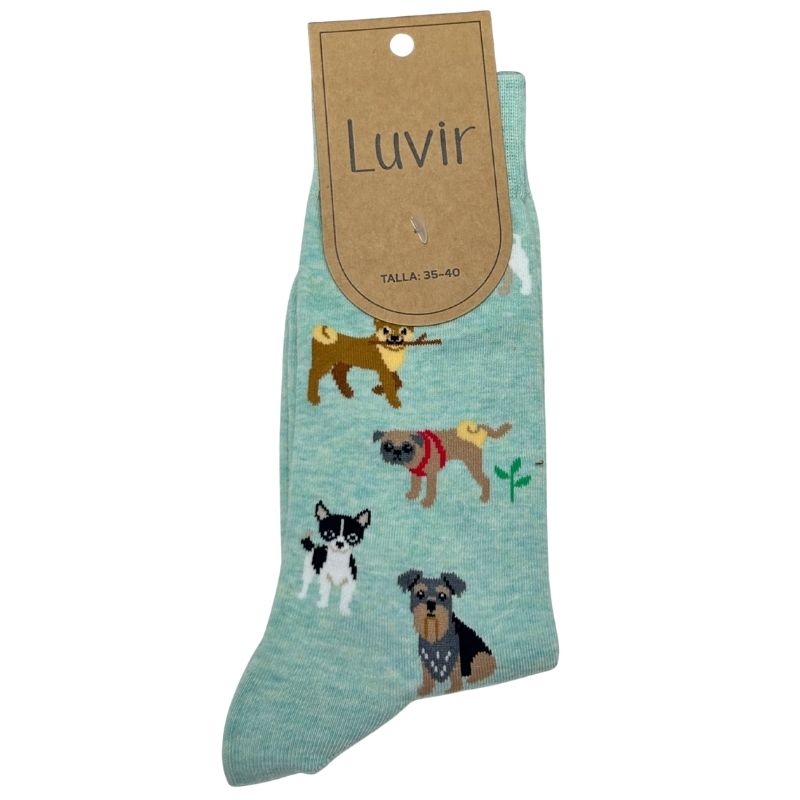 Calcetines de algodón para mujer con estampado de perros. Cómodos, suaves y elásticos. Talla única 35-40.