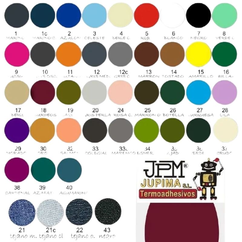 COLOR JUPIMA | 01, 01C, 02, 03, 04, 05, 06, 07, 08, 09, 10, 11, 12, 12C, 13, 14, 15, 16, 17, 18, 19, 19O, 20, 21, 21C, 22, 24, 25, 26, 27, 28, 29, 30, 32, 33, 33O, 34, 36, 37, 38, 39, 40, 43 |